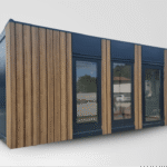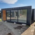 Elegant en modern handels-/dienstverleningspaviljoen van 21 m², ontworpen voor maximale interieurpresentatie.