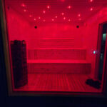 Uitgerust met een elektrische kachel voor snel opwarmen en sfeervolle LED-sterrenhemelverlichting voor een ontspannen sfeer tijdens sessies.